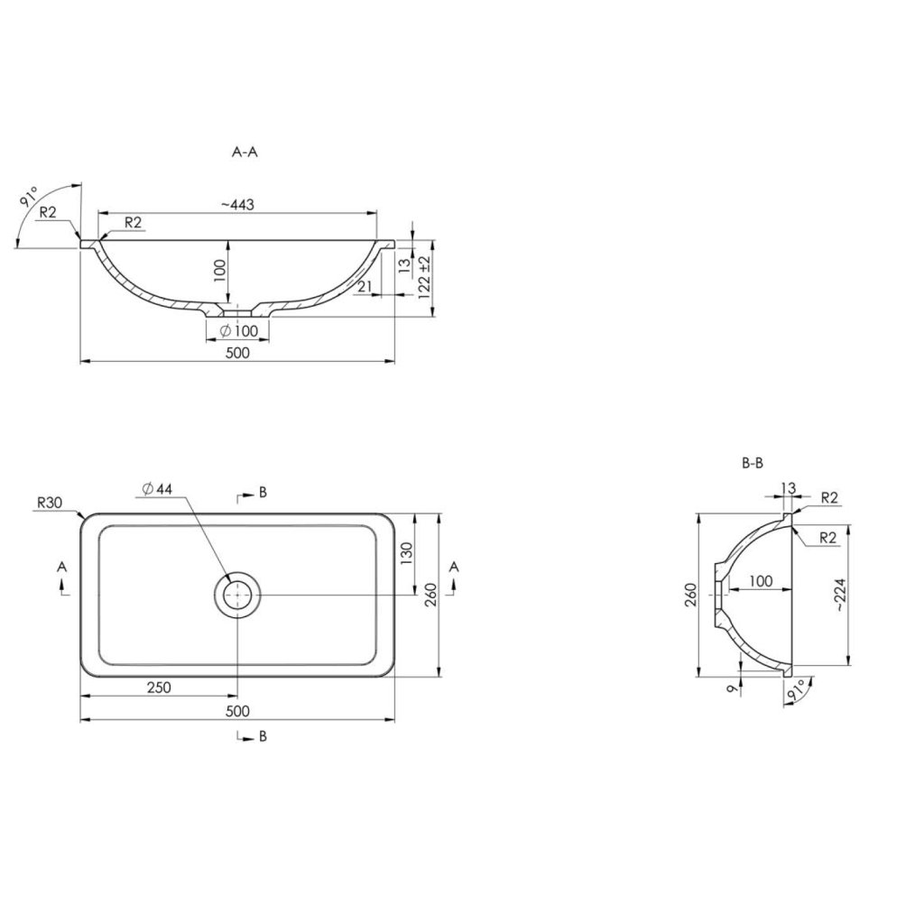 Sapho, KAMA umyvadlo 500x260mm, litý mramor, bílá, zápustná, 50134