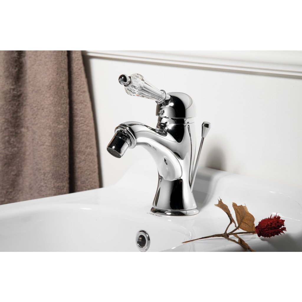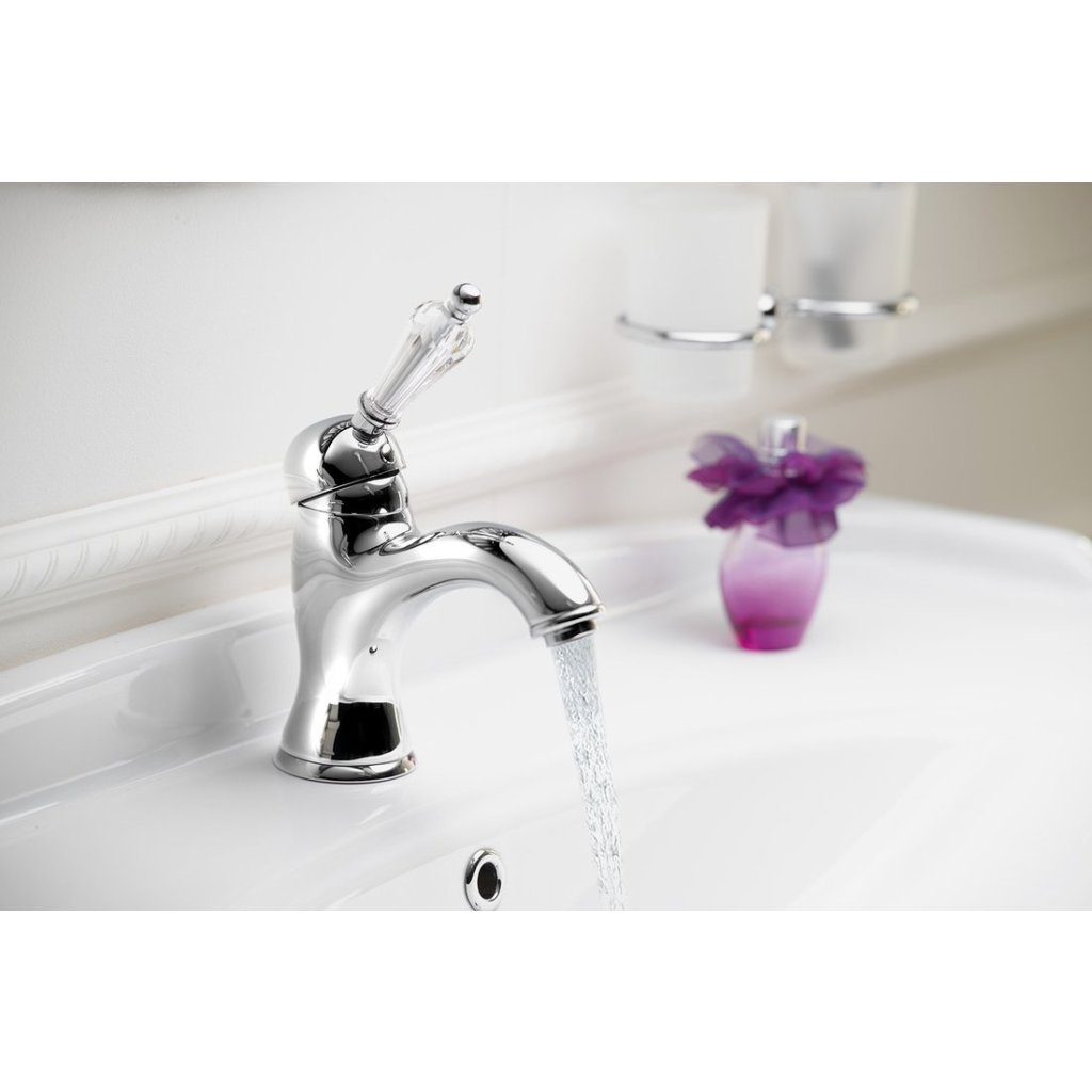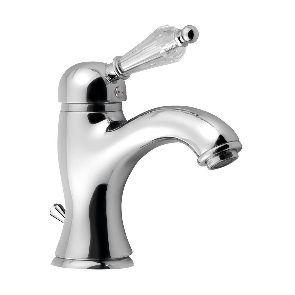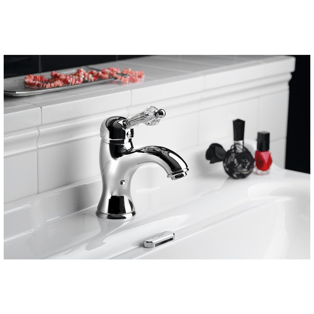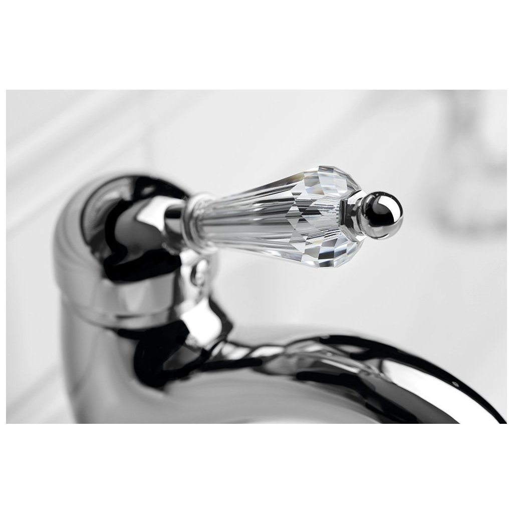 Sapho, KIRKÉ CRYSTAL stojánková umyvadlová baterie s výpustí, křišťálová páčka, chrom, KI02KC