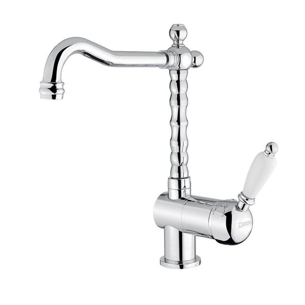 Sapho, KIRKÉ WHITE stojánková dřezová baterie, bílá páčka, chrom, KI14BC