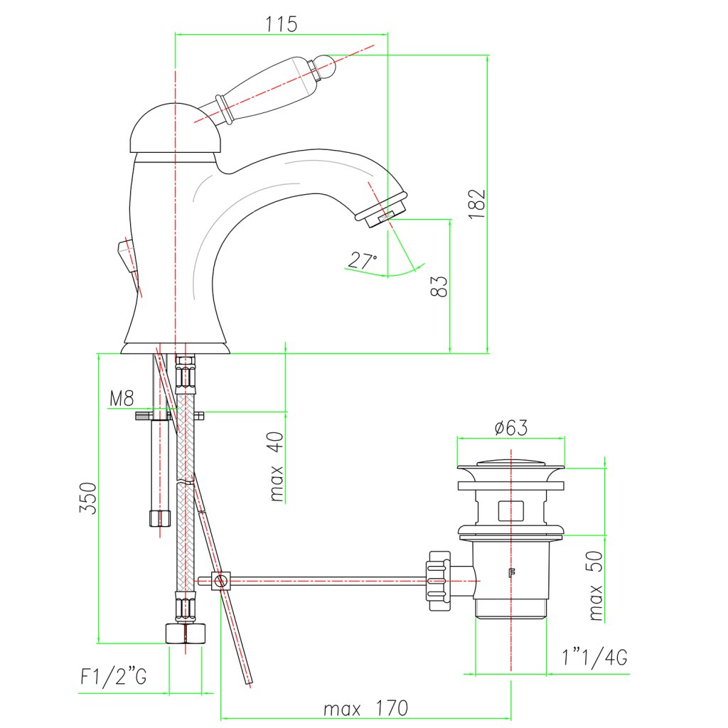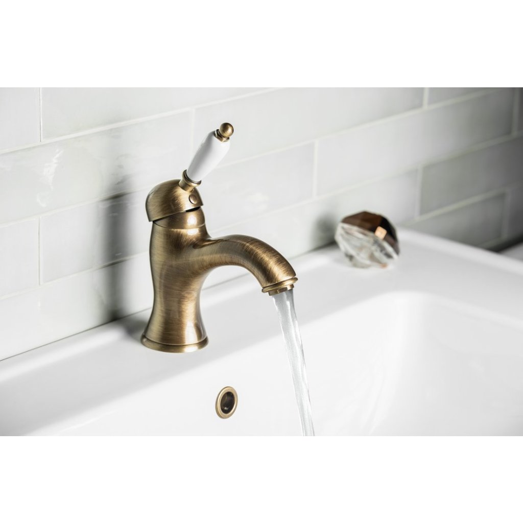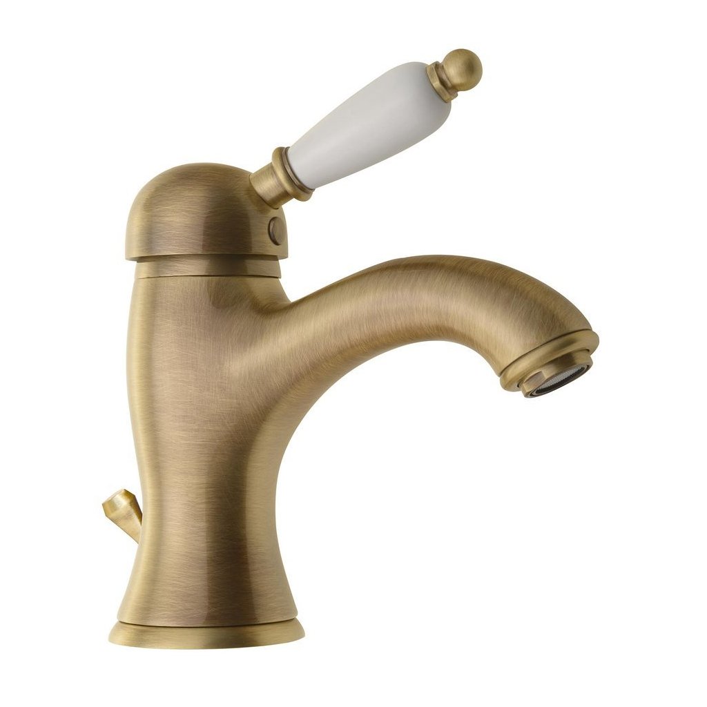 Sapho, KIRKÉ WHITE stojánková umyvadlová baterie s výpustí, bílá páčka, bronz, KI02BB