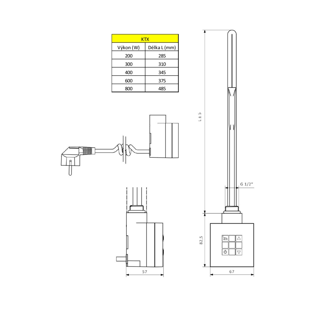 KTX - elektrická topná tyč s designovým termostatem. Hranatý design vhodný pro všechny typy radiátorů. Symetrické provedení umožňuje instalaci na levou i pravou stranu radiátoru.