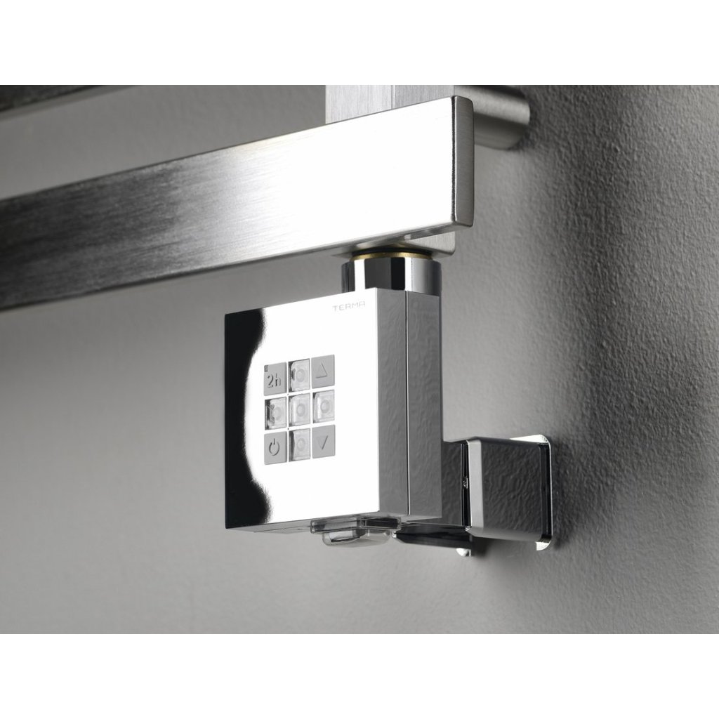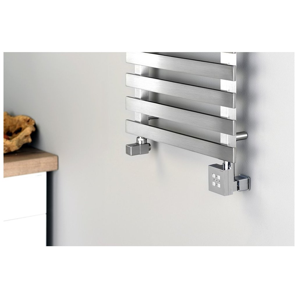KTX s krytem pro přímé napojení do zdi - elektrická topná tyč s designovým termostatem. Hranatý design vhodný pro všechny typy radiátorů. Symetrické provedení umožňuje instalaci na levou i pravou stranu radiátoru.