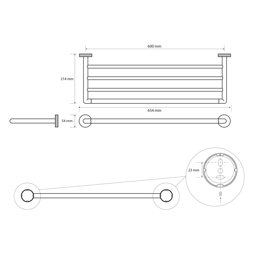Sapho, LARISSA polička na ručníky 600mm, černá/měď mat, WS028BC