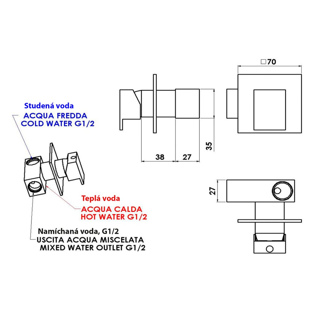 Sapho, LATUS podomítková baterie s bidetovou sprškou Latus, hranatá, 1102-40-01