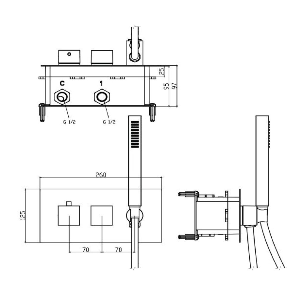 Sapho, LATUS podomítková sprchová termostatická baterie včetně ruční sprchy, 2 výstupy, chrom, 1102-45