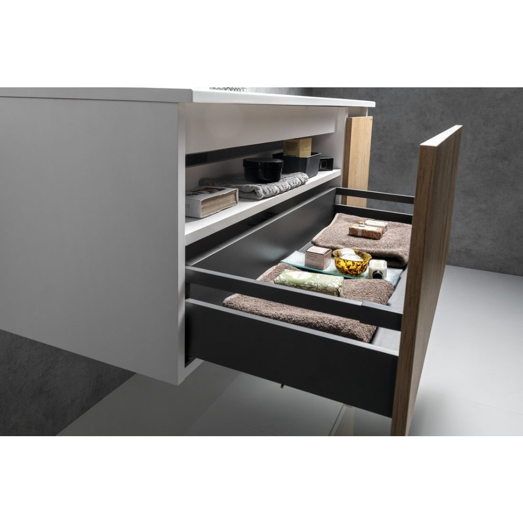 Čistý design série LOREA se vyznačuje jednoduchým bezúchytkovým otevíráním zásuvek. Sestavy zásuvkových skříněk v kombinaci s otevřenou policí nebo skříňkou nabízí rozměry od 100 do 180 cm. Pro tyto sestavy lze vybírat konsolová umyvadla Areca, polozápustná Brahea nebo z široké nabídky umyvadel na postavení, která lze na desce libovolně umístit.