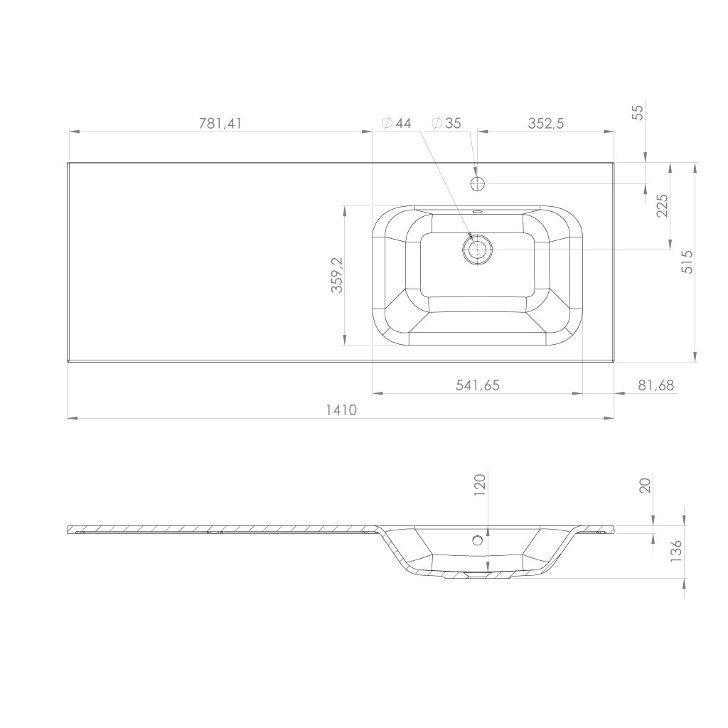 Sapho, LOREA skříňka s umyvadlem 141x46x51, 5cm (70+70cm), pravá, bílá matná, LE070-3131-R-04