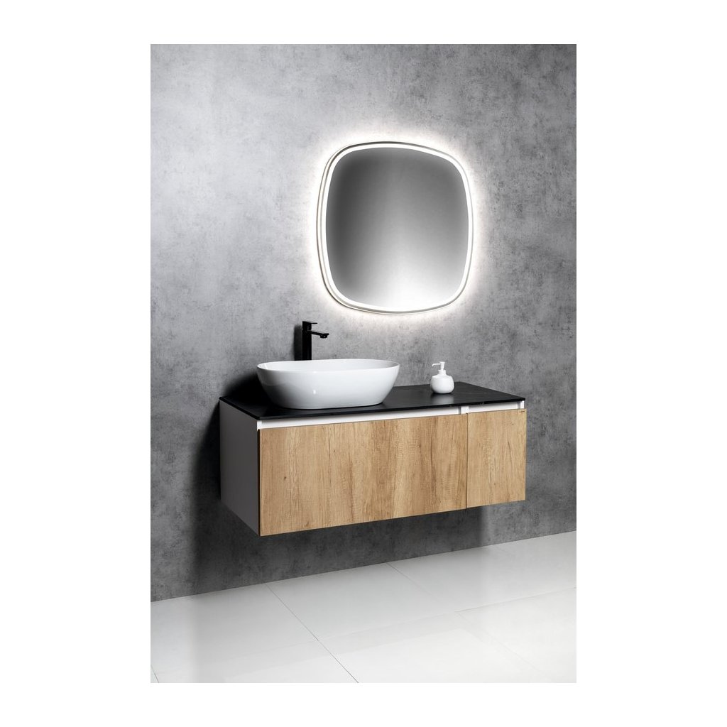 Uvnitř skříňky je nad zásuvkou praktická police na drobnosti každodenní potřeby. Pod hranu umyvadla lze instalovat tlumené LED osvětlení, které pro jeho nízkou spotřebu (1W) není nutné vypínat.