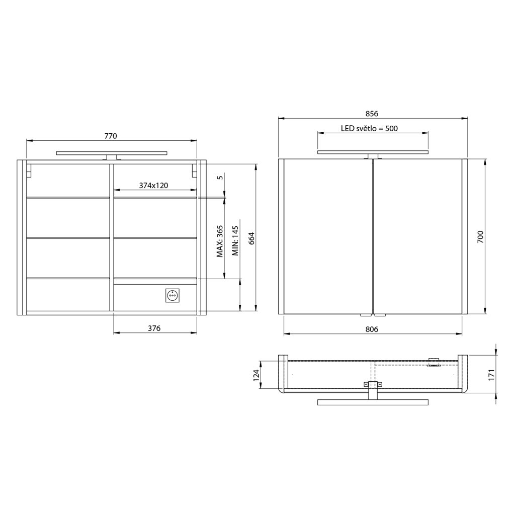 Sapho, LUCIE galerka s LED osvětlením, 86x70x17cm, bílá, LU085-0030