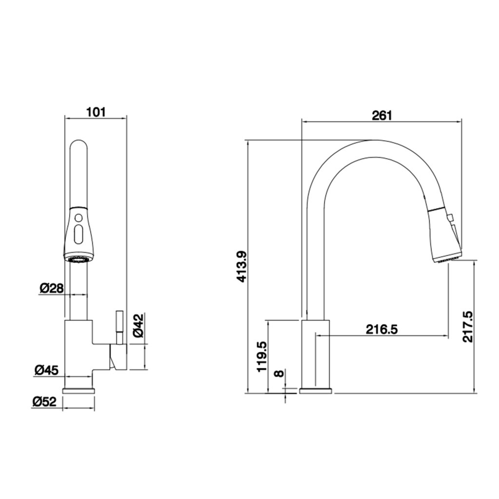 | Ostatné: | Výsuvná hubica/spŕška;Otočné ramienko |