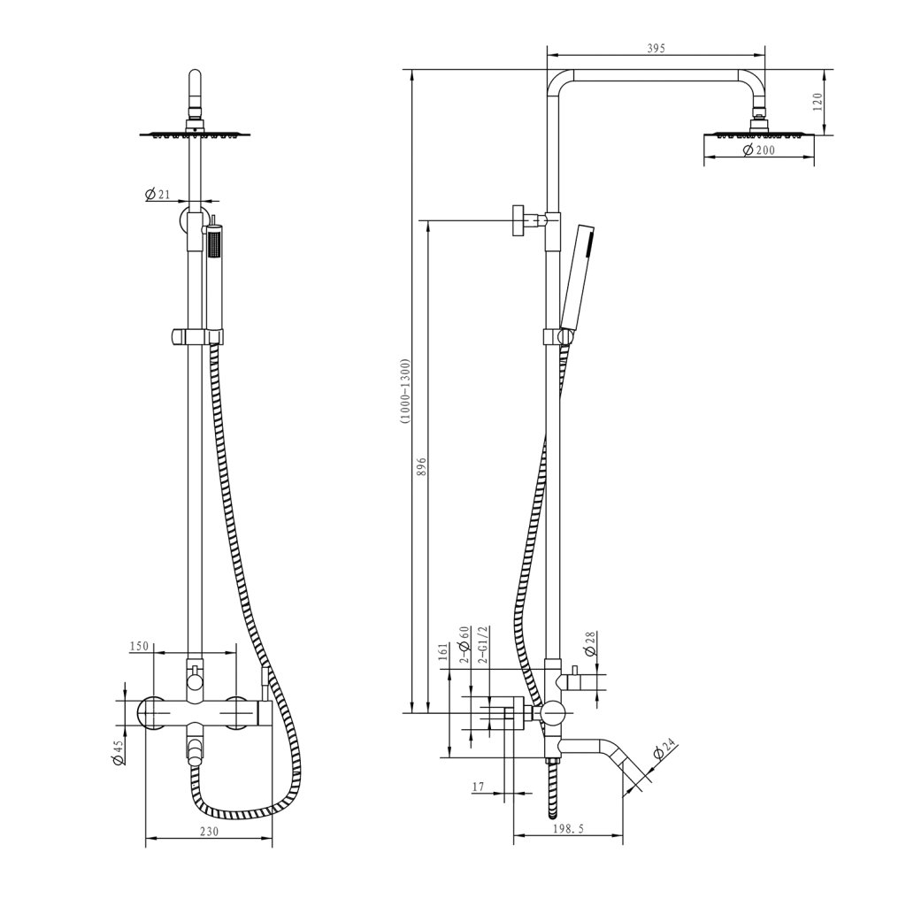Sapho, MINIMAL sprchový/vanový sloup s pákovou baterií, nerez, MI140