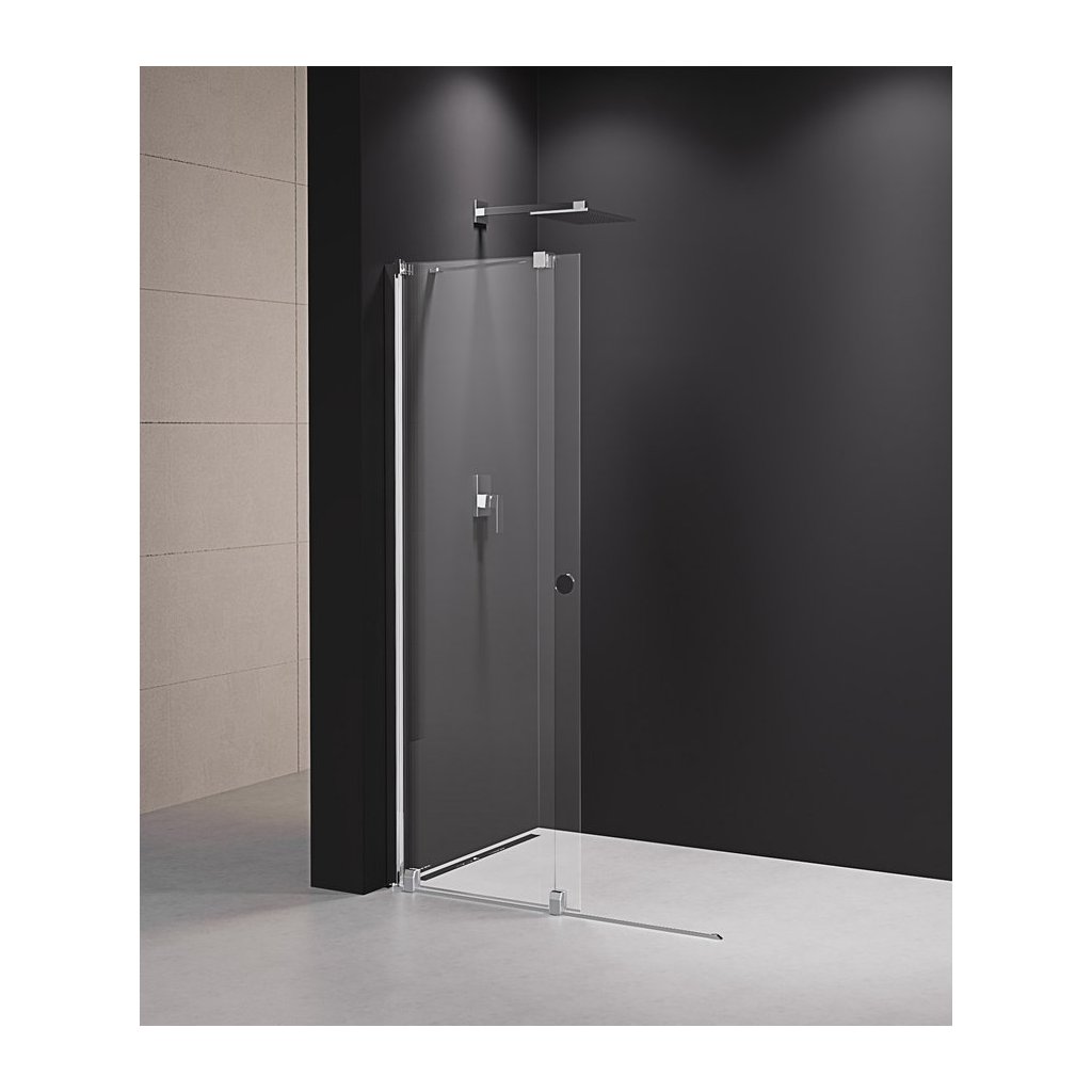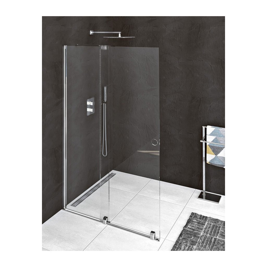 Dvojdílná zástěna, tvořená pevnou a posuvnou částí. Posuvná část se pohybuje na ložiskových kolech po tenké kolejnici, která zároveň tvoří přetokovou lištu. Maximální šíře vysunutých dveří je 140 cm. Šířka je nastavitelná zkrácením kolejnice a umístěním koncového dorazu na kolejnici i na skle.