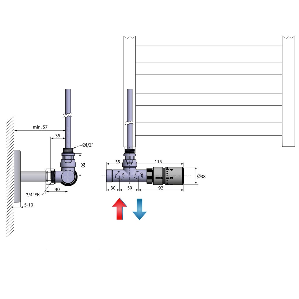Sapho, MONO ONE připojovací sada ventilů termostatická jednobodová, rozteč 50mm, provedení Chrom