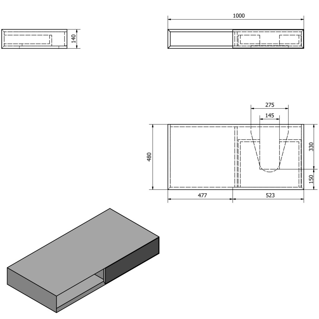 Sapho, MORIAN umyvadlová skříňka 100x14x48cm, dub černý, pravá, MR126