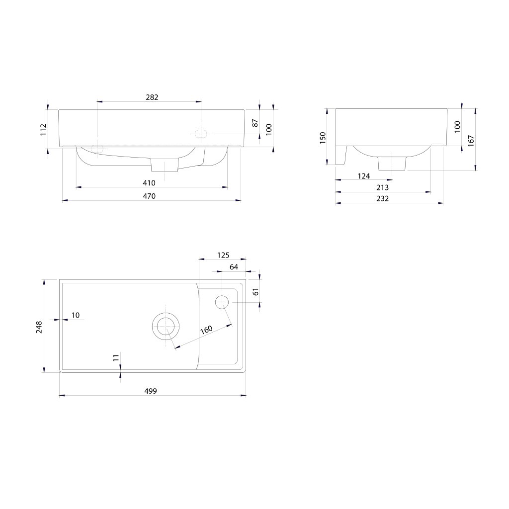 Sapho, NUALI keramické umyvadlo 50x25 cm, pravé, bílá, TU0122