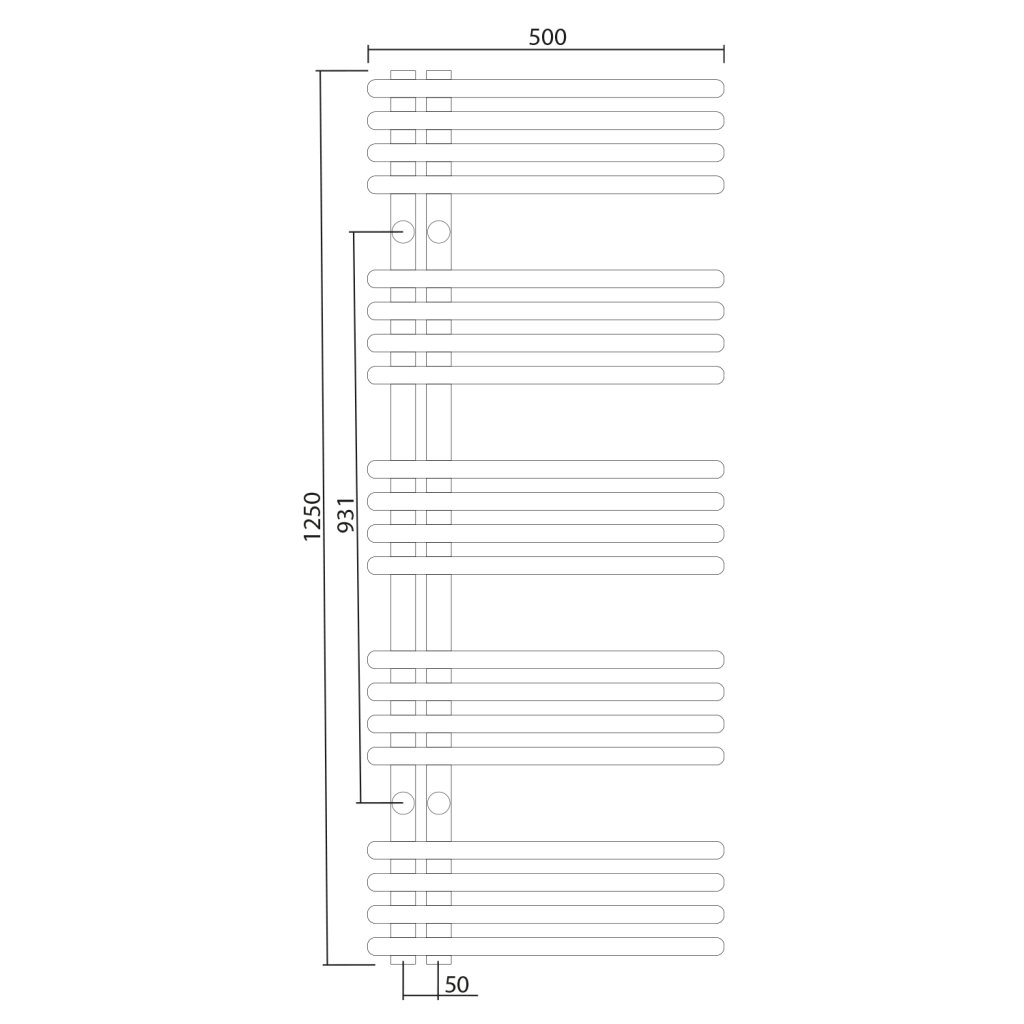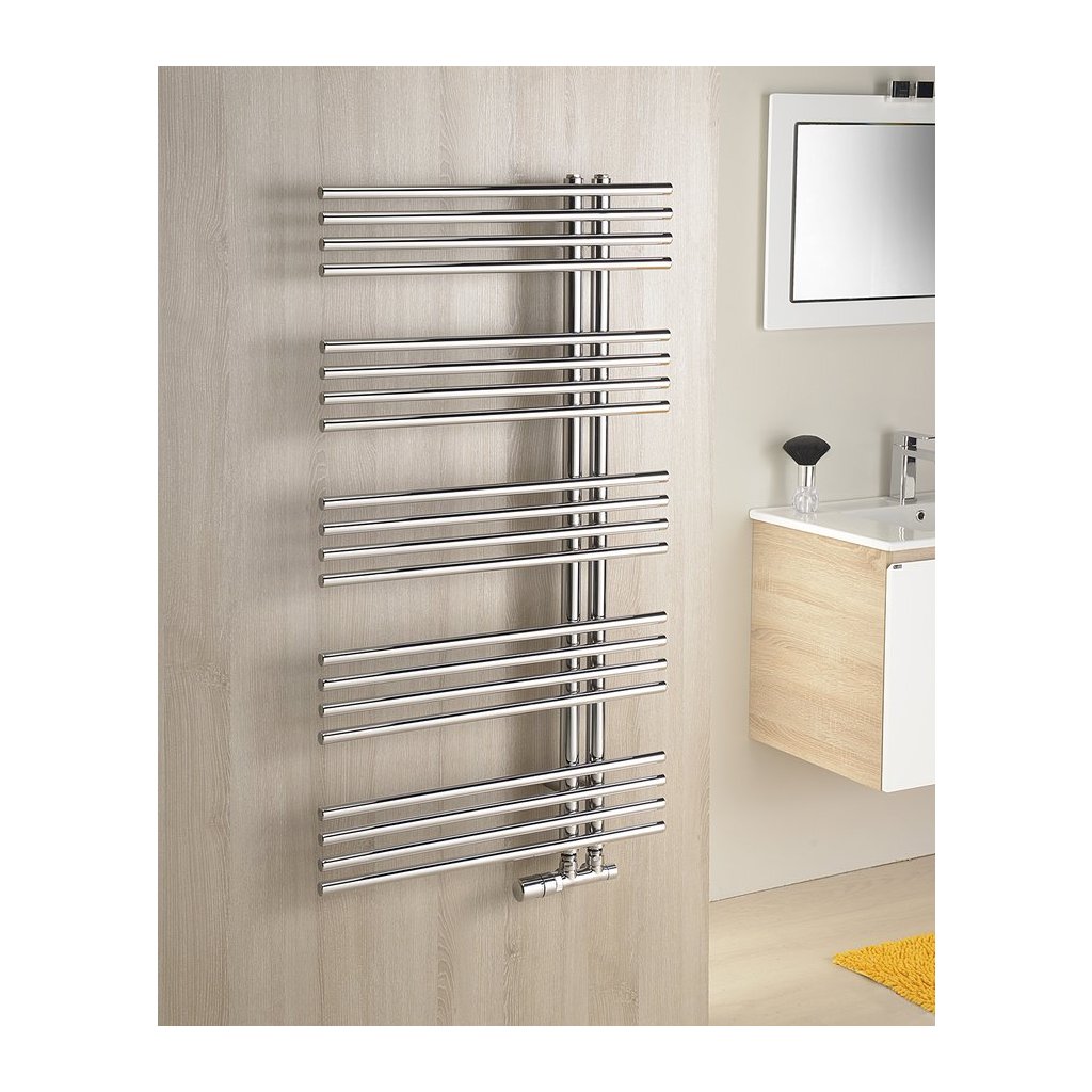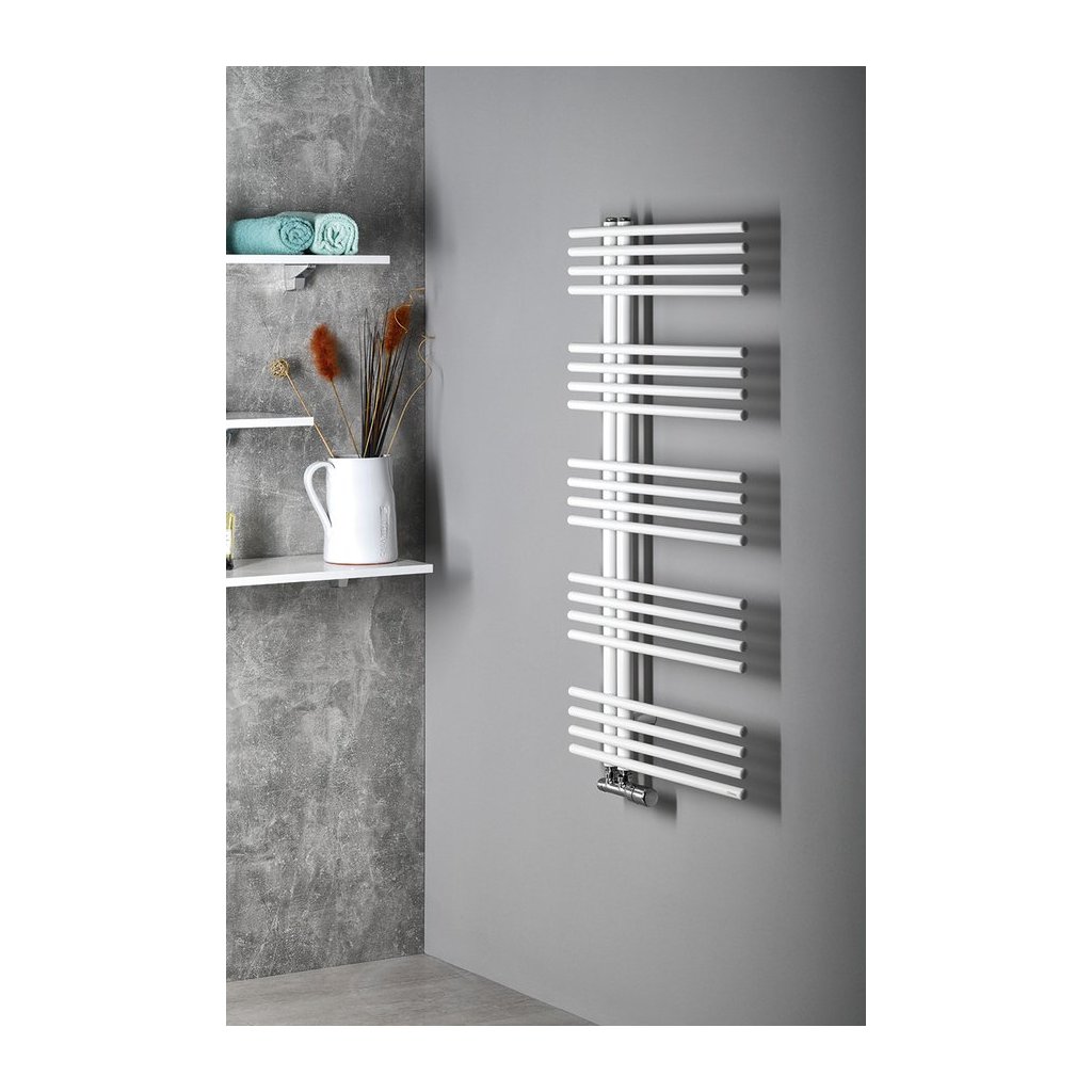 Klasické trubky s kruhovým profilem sestavené v designový radiátor, který lze díky středovému připojení s roztečí 50 mm kombinovat s designovými ventily z naší nabídky.