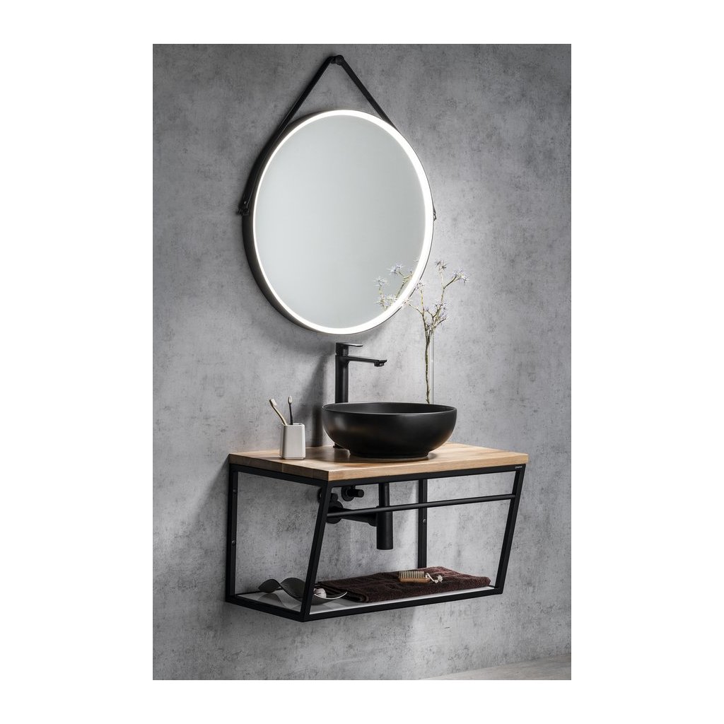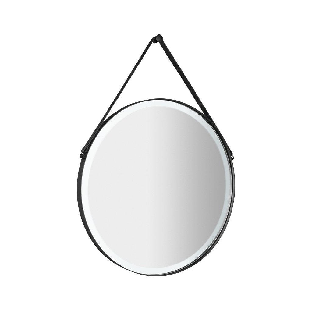 Sapho, ORBITER kulaté zrcadlo s LED osvětlením, kožený popruh, ø 70cm, černá mat, ORL070