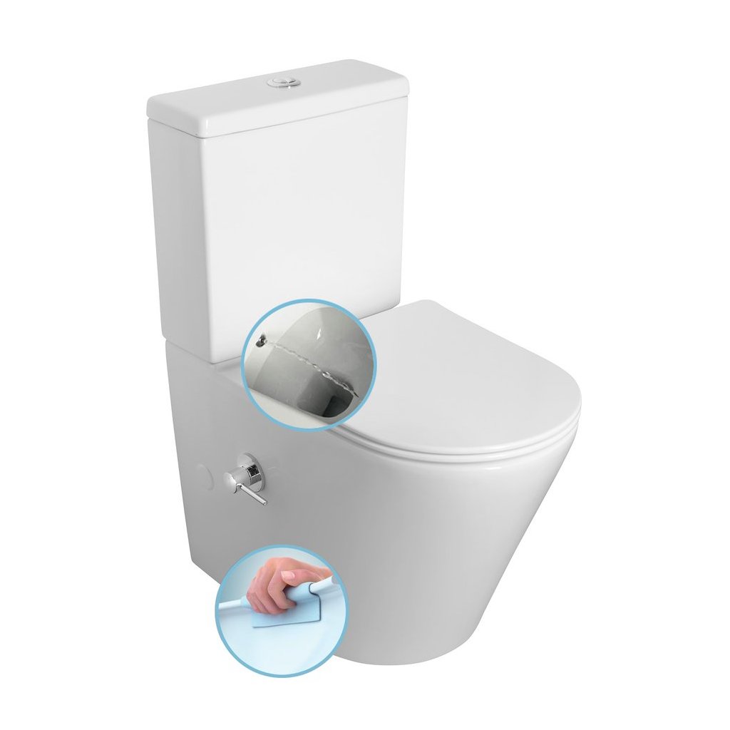 Sapho, PACO CLEANWASH WC kombi mísa, integrovaná baterie a bidetová sprška, spodní/zadní, bílá, PC1012RX