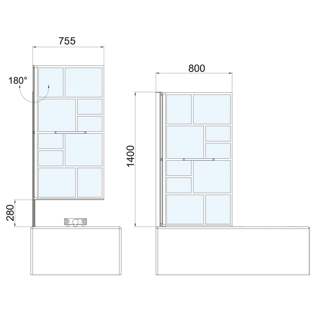 Sapho, PARANA vanová zástěna s pneumatickým zdvihem, š.800mm, černá matná, čiré sklo