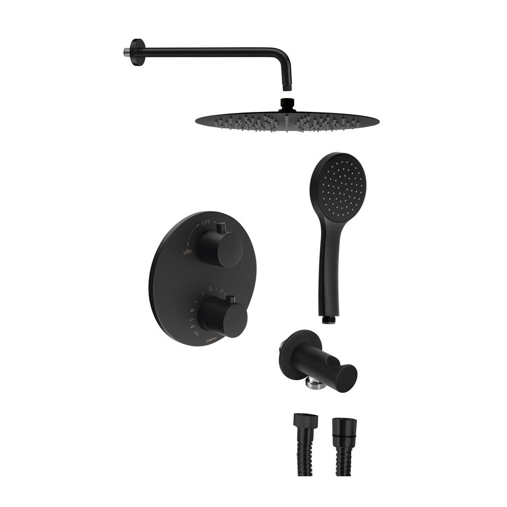 Sapho, Podomítkový sprchový set s termostatickou baterií, box, 2 výstupy, černá mat, RH399B-01
