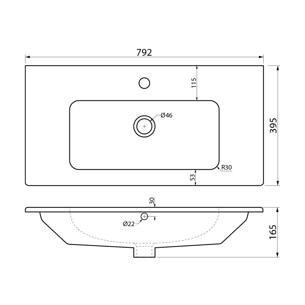 Sapho, PRACTICO keramické umyvadlo na nábytek 80x40cm, bílá, 44080