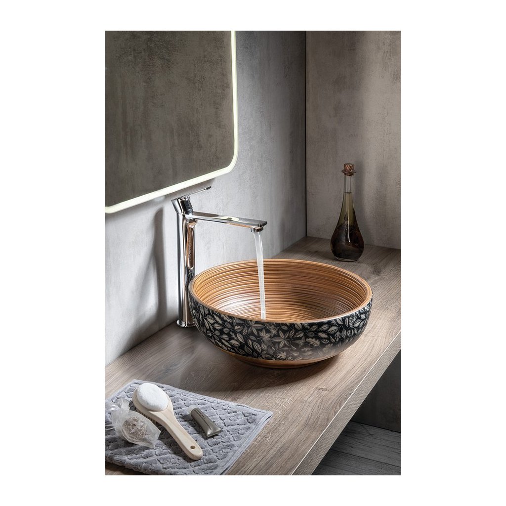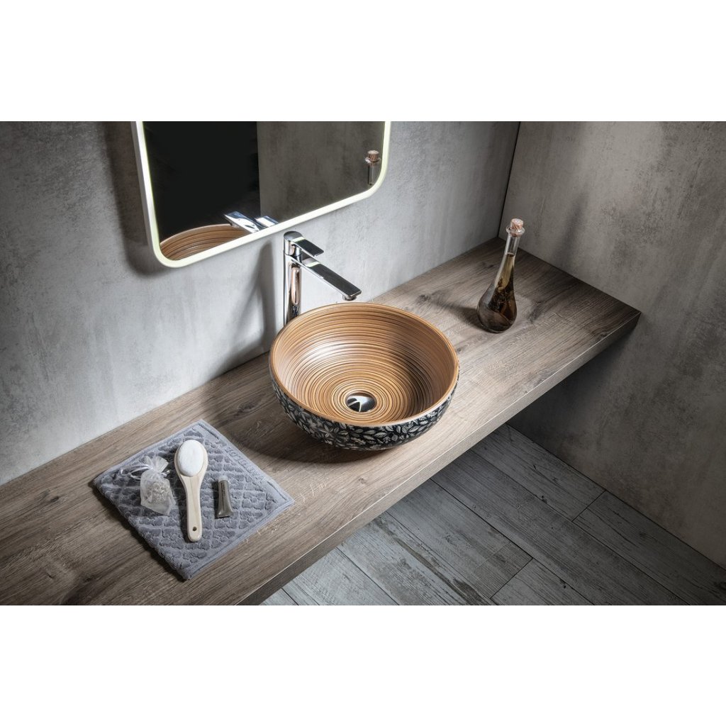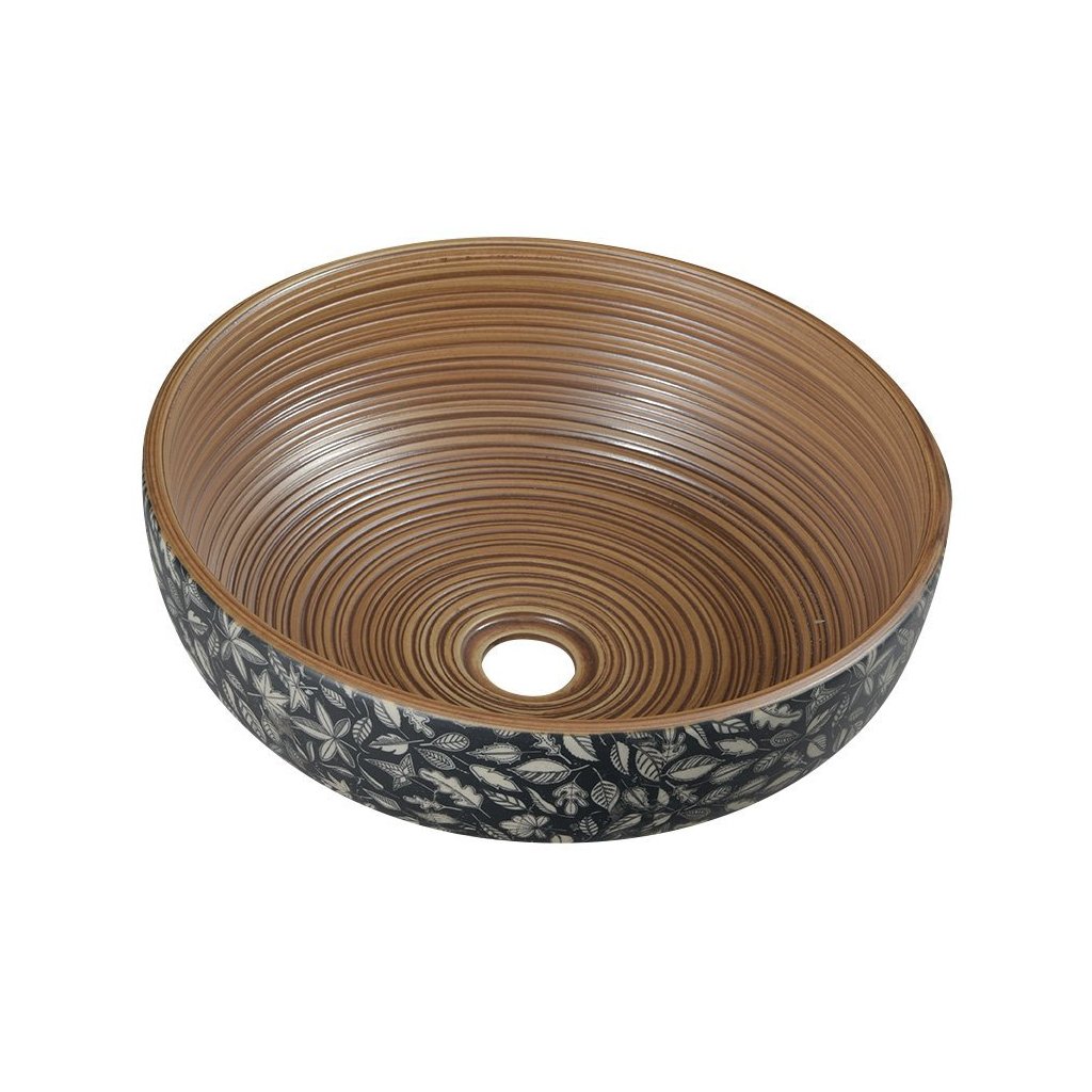 Sapho, PRIORI keramické umyvadlo na desku Ø 41 cm, hnědá s modrým vzorem, PI023