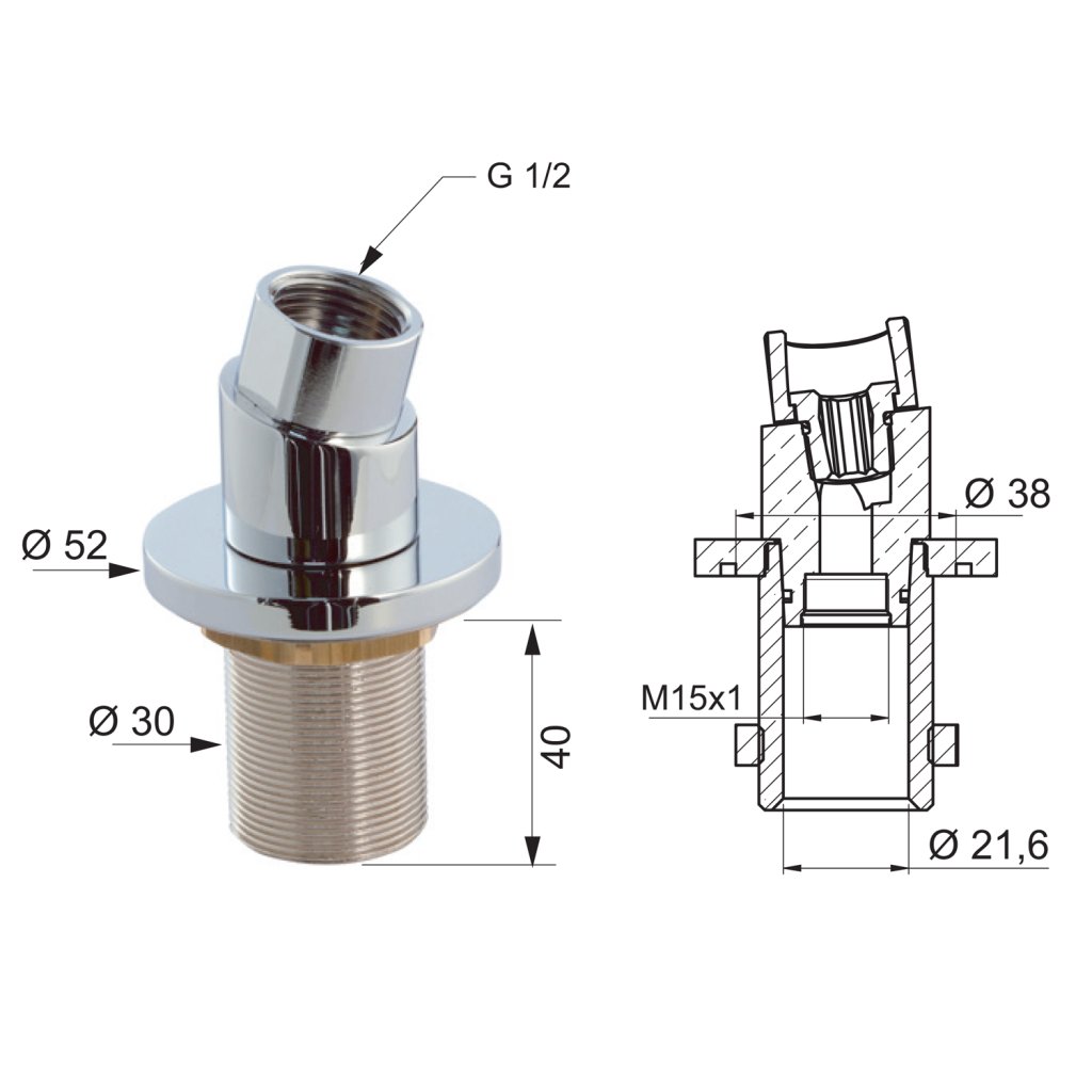 Sapho, Průchodka na vanu s mezikusem na sprchu k hadici FLE1, chrom, 1205-41