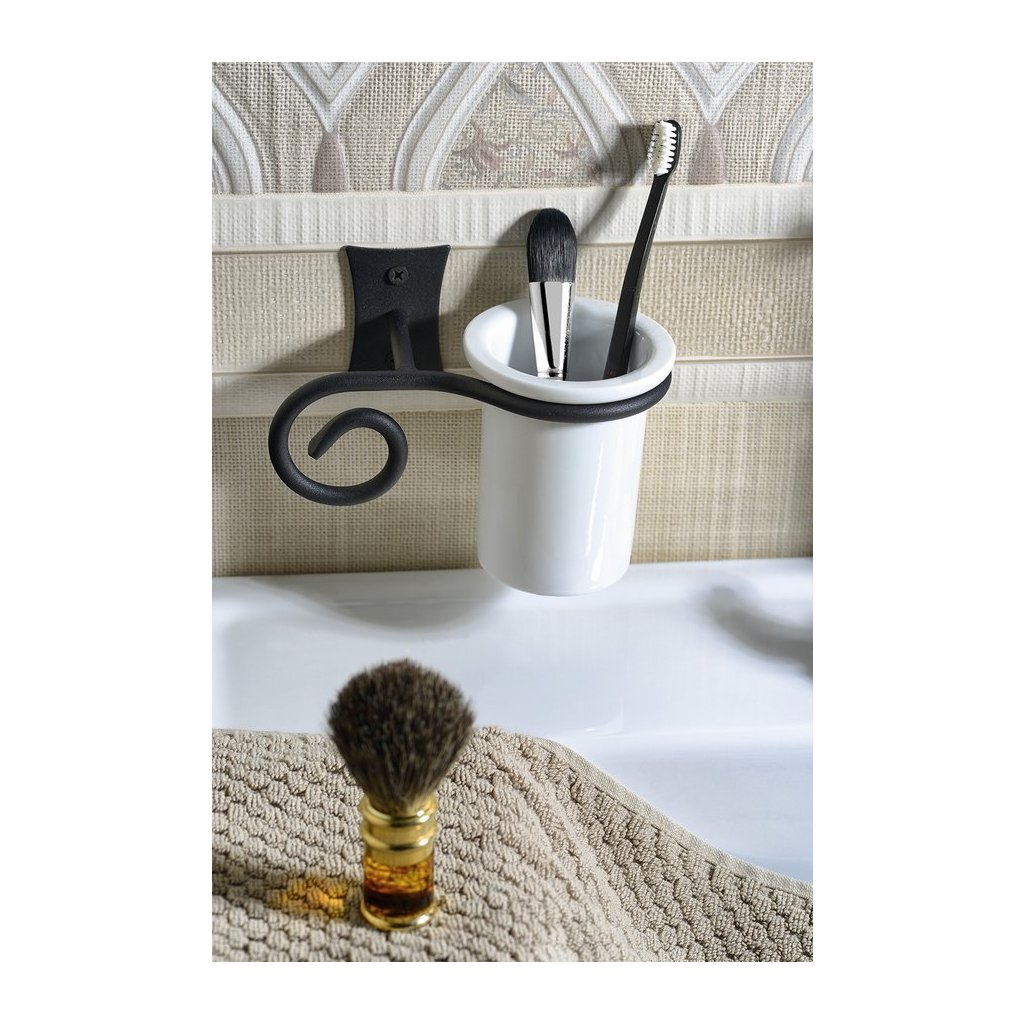 Koupelnové doplňky REBECCA evokují krásu uměleckého kovářství. Kované úchyty vkusně doplňují nádobky z bílé keramiky. Nechte se unést surovou krásou zručně zpracovaného kovu série REBECCA.