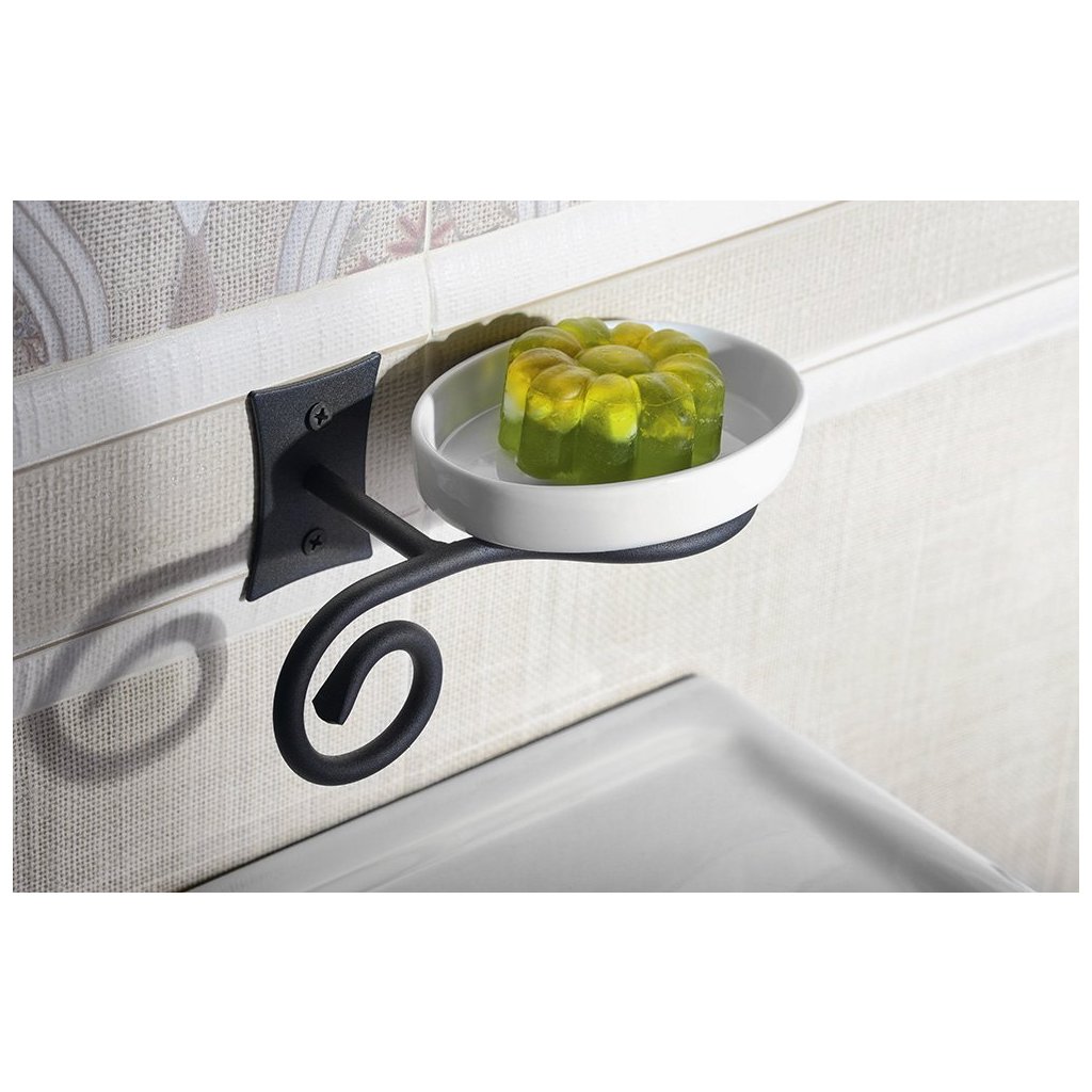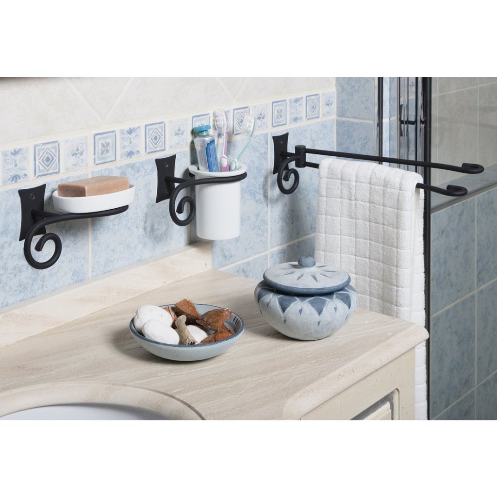 Koupelnové doplňky REBECCA evokují krásu uměleckého kovářství. Kované úchyty vkusně doplňují nádobky z bílé keramiky. Nechte se unést surovou krásou zručně zpracovaného kovu série REBECCA.