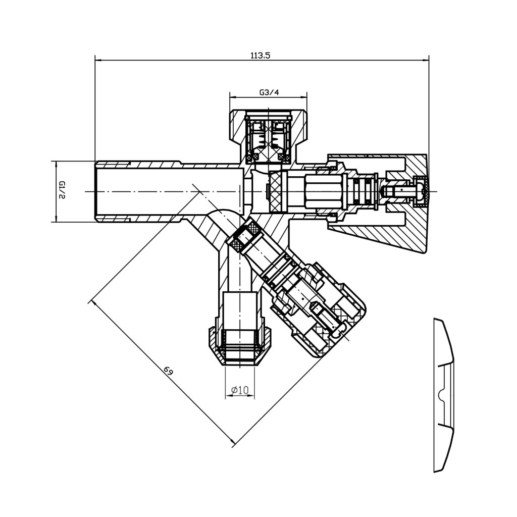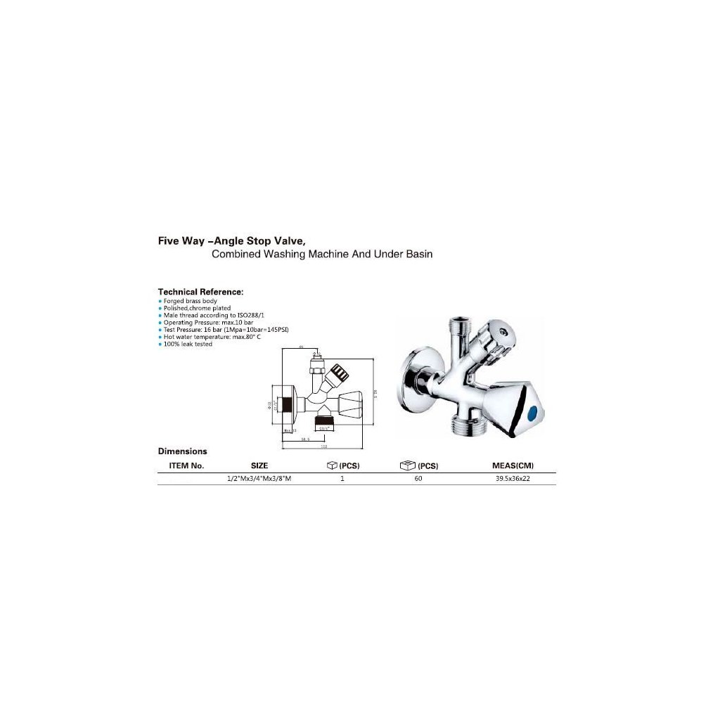 Sapho, Rohový ventil pračkoroháček se zpětným ventilem 3/8'x3/4'x1/2', chrom