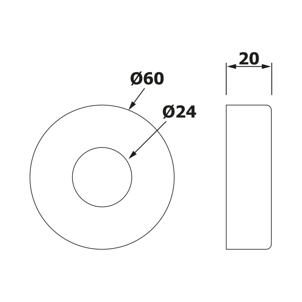 Sapho, Rozeta 60/24 mm, výška 20 mm, černá matná, RS216