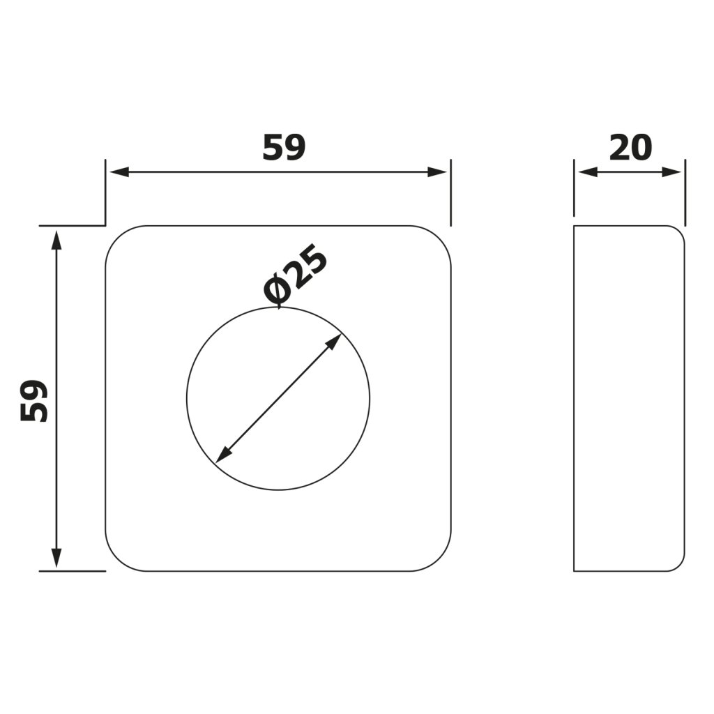 Sapho, Rozeta hranatá 59/25 mm, výška 20 mm, chrom, RS311