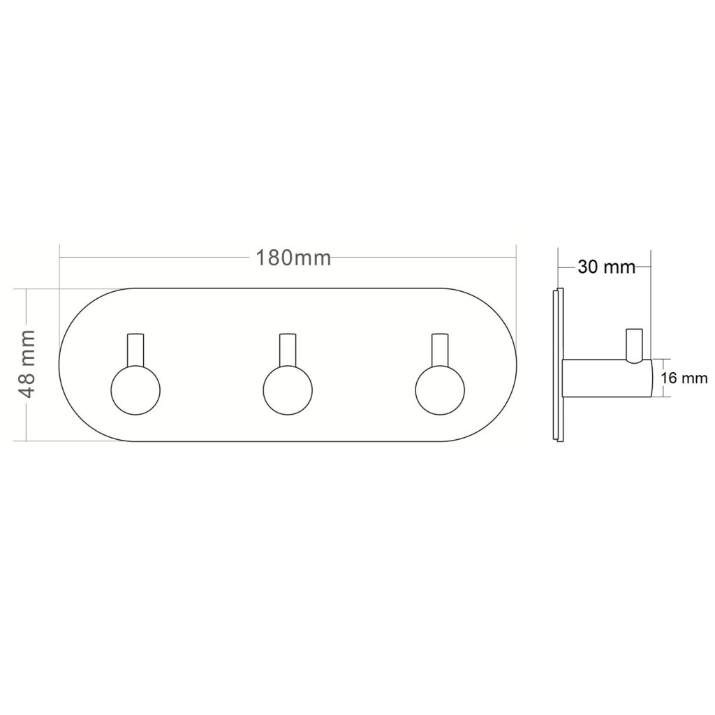 Sapho, Samolepící trojitý háček, kulatý, černá mat, 32203B