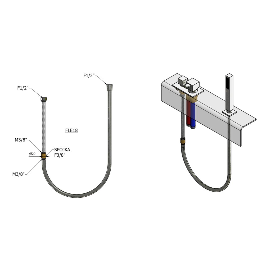 Sapho, SET sprchová hadice k baterii na okraj vany, F1/2'- F1/2', 275 cm, chrom, FLE18