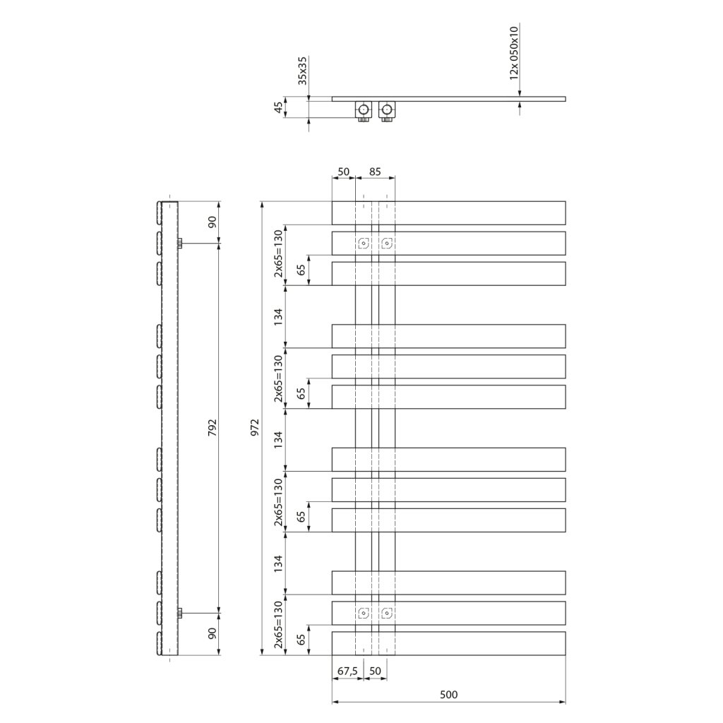 Rozteč připojení 50 mm: | Nesymetrické (na bok) |