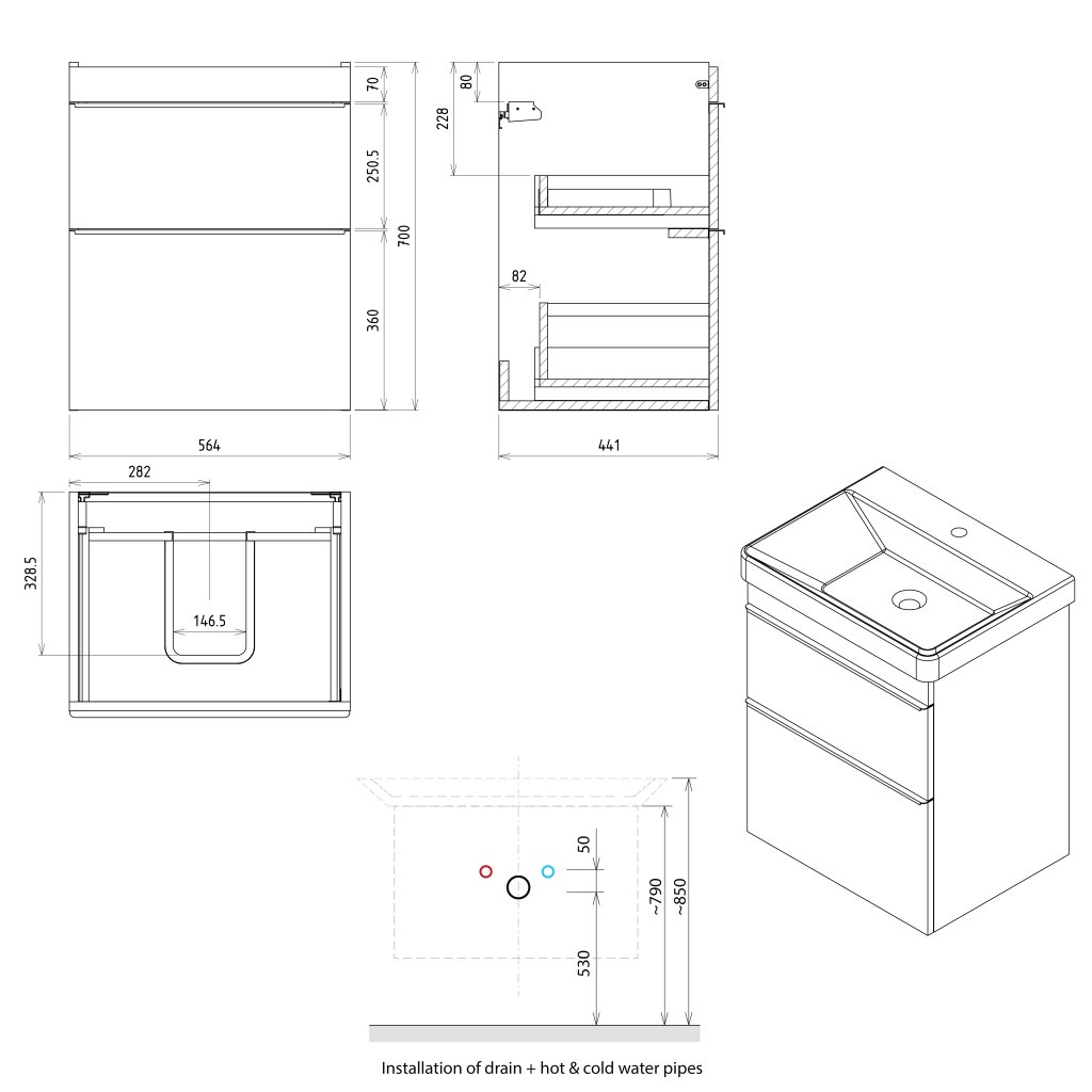 Sapho, SITIA umyvadlová skříňka 56,4x70x43,4cm, 2x zásuvka, dub Alabama, SI060-2222