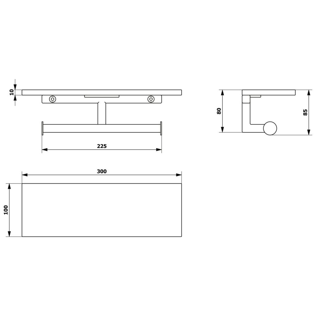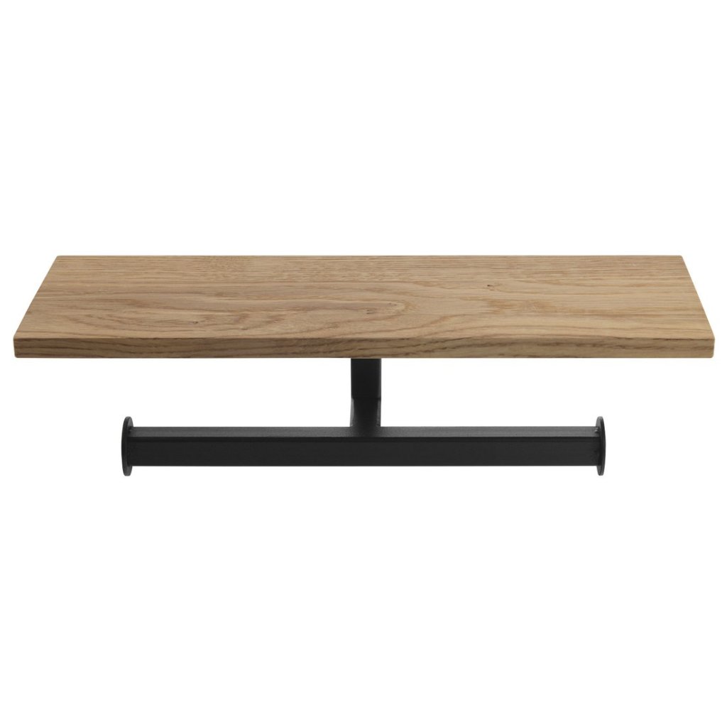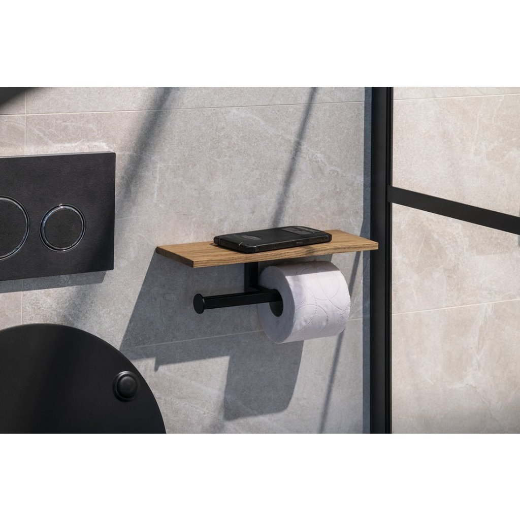 Sapho, SKA dvojitý držák toaletního papíru s poličkou 30x8x10cm, černá matná/dub, SKA425