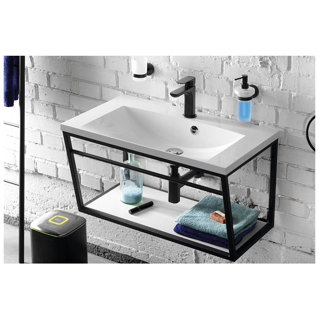 Sapho, SKA Konstrukce pod umyvadlo 600x400x460mm, černá mat, s bílou MDF policí, SKA101
