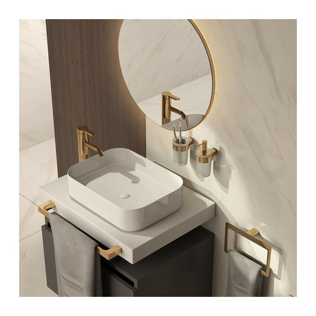 Snad inspirován pohledem na krásu Pyrenejí navrhl designér sérii doplňků PIRENEI. Masivní základna, kombinace přímých linií a zaoblených hran je spojením elegance a majestátnosti. Na výběr jsou doplňky v provedení v chromové, matné černé, matné bílé, gun metal, zlaté a matné zlaté variantě.