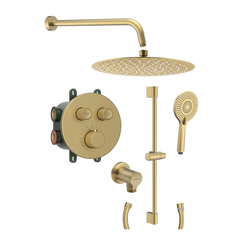 Sapho, SMART SELECT sprchový set s termostatickou baterií, 2 výstupy, posuvný držák sprchy, zlato mat, RP032GB-02