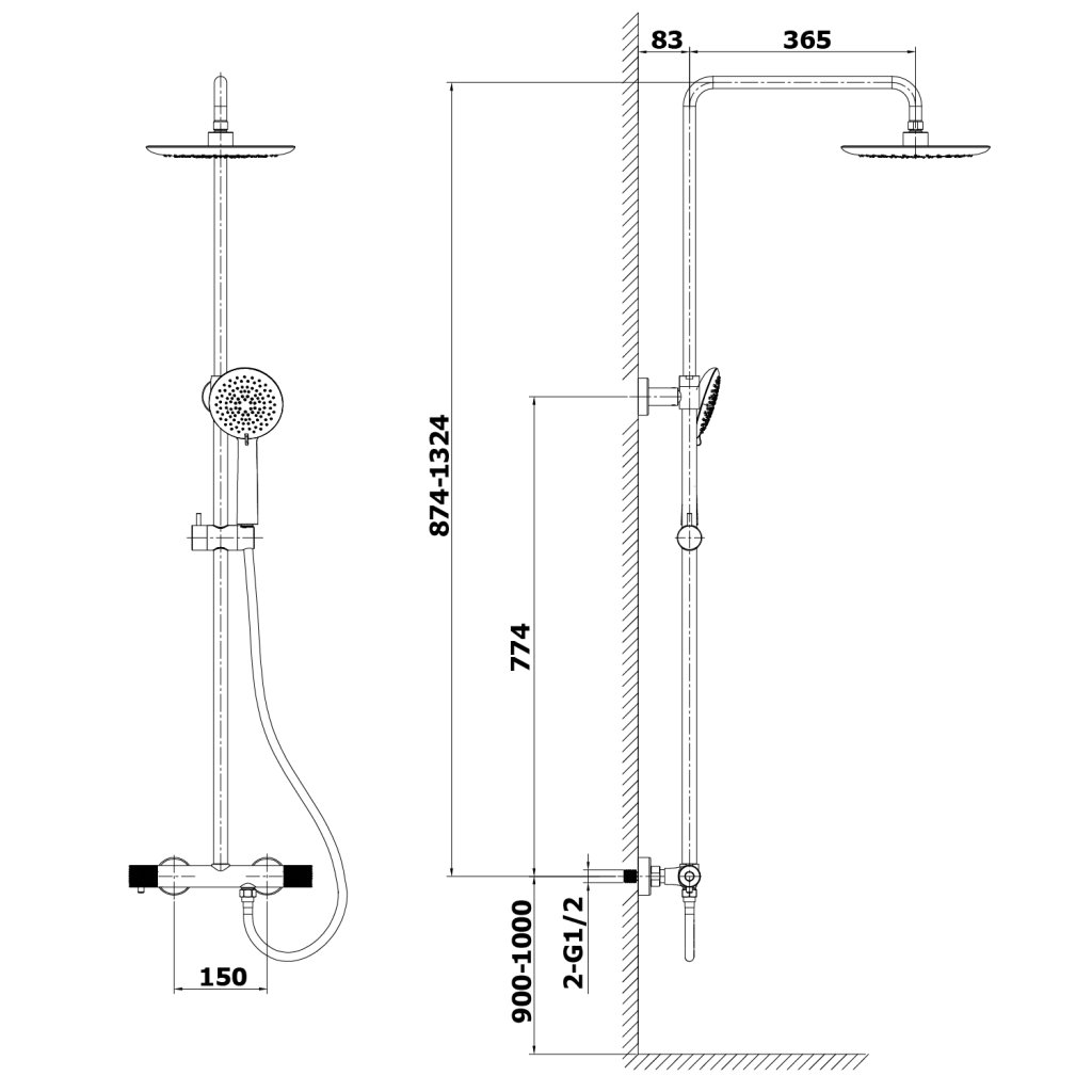 Sapho, SOLARIS sprchový sloup s termostatickou baterií, chrom/černá, WD139CB