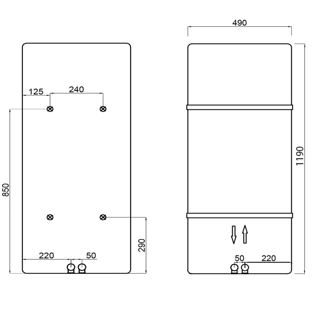 Originální, výjimečně ultra tenké radiátory krásných elegantních tvarů budou nejen zdrojem tepla, ale i designovým prvkem koupelny. Radiátor je vyroben z uhlíkové oceli o tloušťce 5 mm. S připojením na okruh ústředního vytápění, se středovým připojením 50 mm.