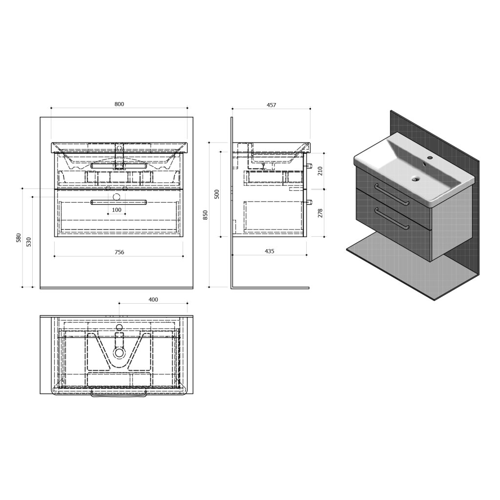 Sapho, THEIA Umyvadlová skříňka 75,6x50x43,5cm, 2x zásuvka, dub stříbrný (TH084), TH080-1111