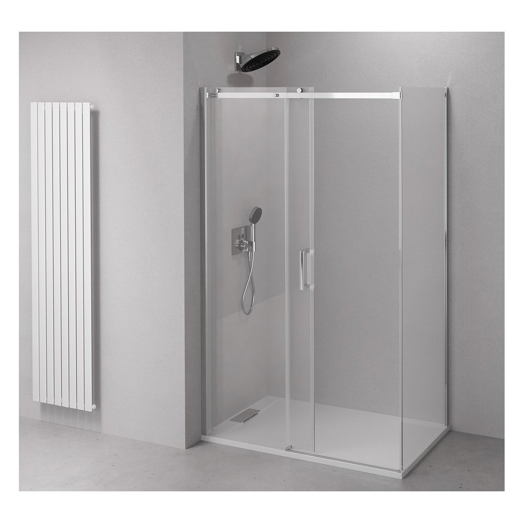 - Dveře jsou děleny na část posuvnou a pevnou - umožňují variabilní instalaci s levým nebo pravým otevíráním