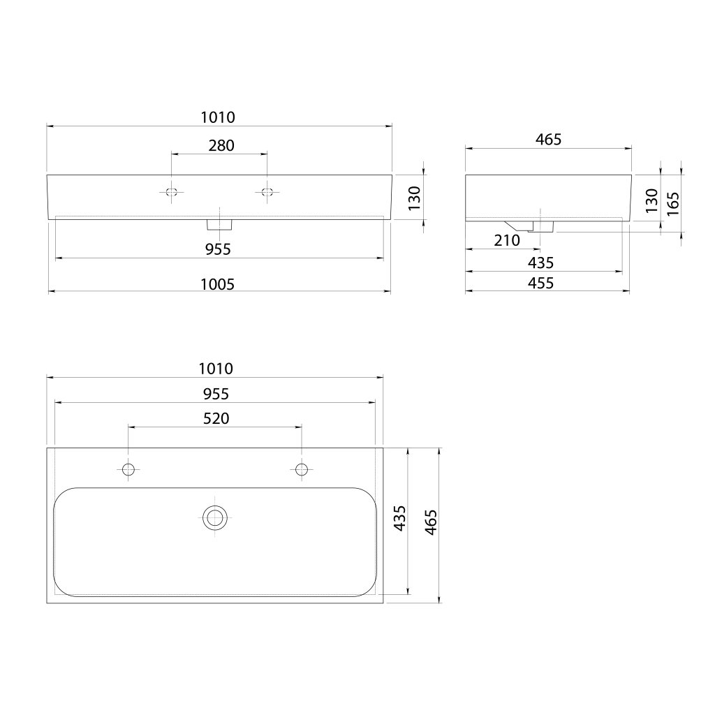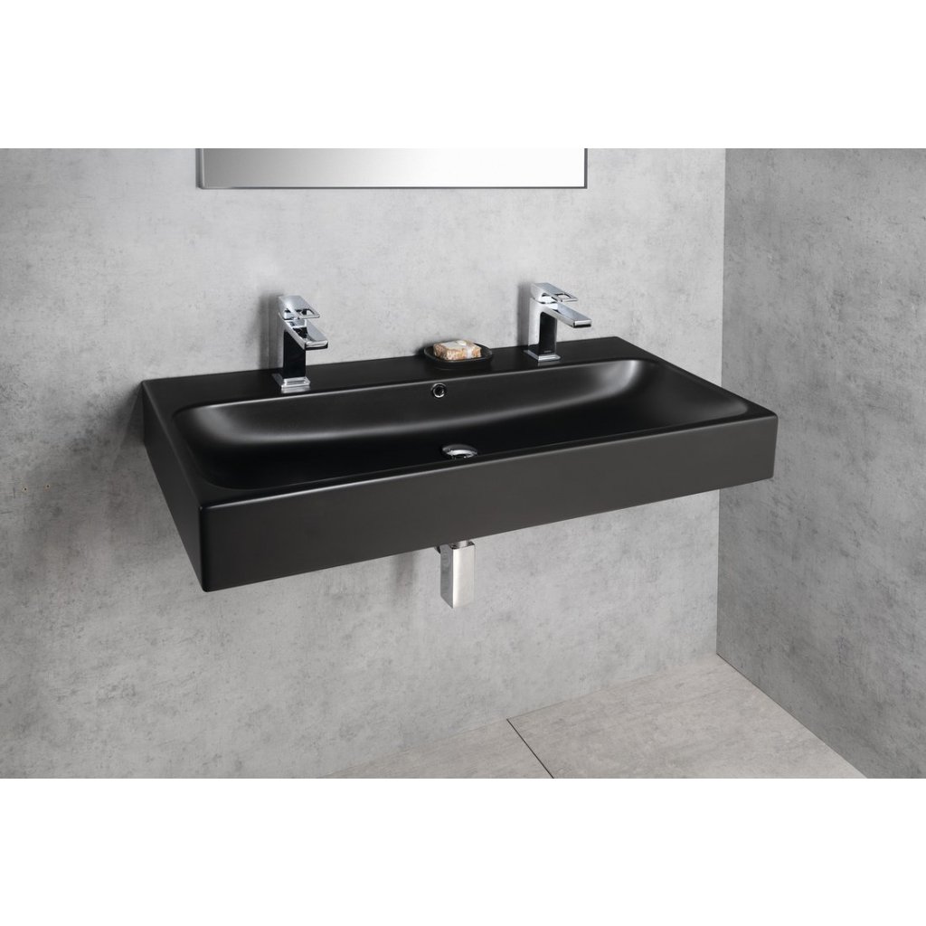 Sapho, TORIDI keramické umyvadlo 101x46,5cm, 2 otvory pro baterii, černá matná, TU0222B