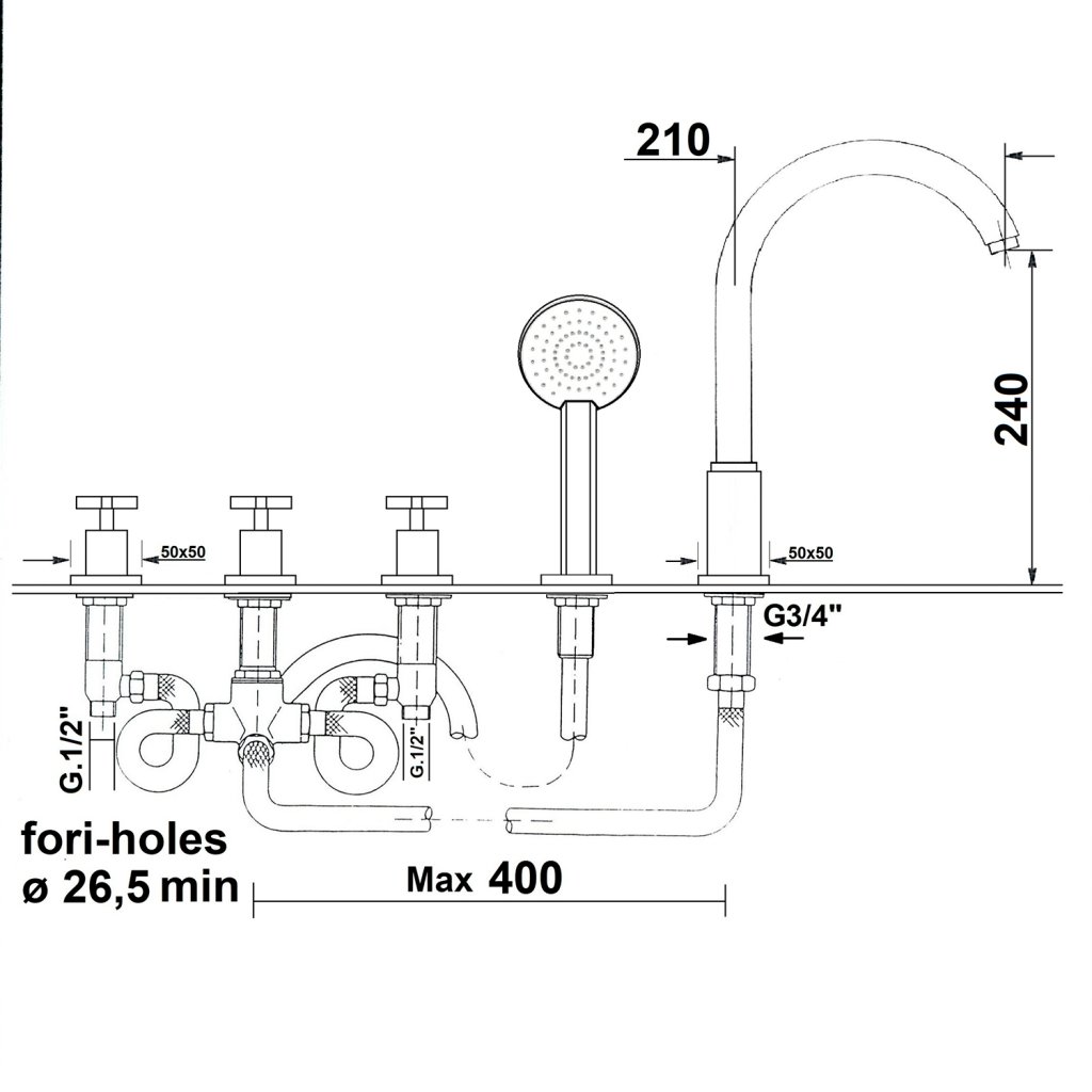 Sapho, TRAX pětiprvková baterie na okraj vany, chrom, 632