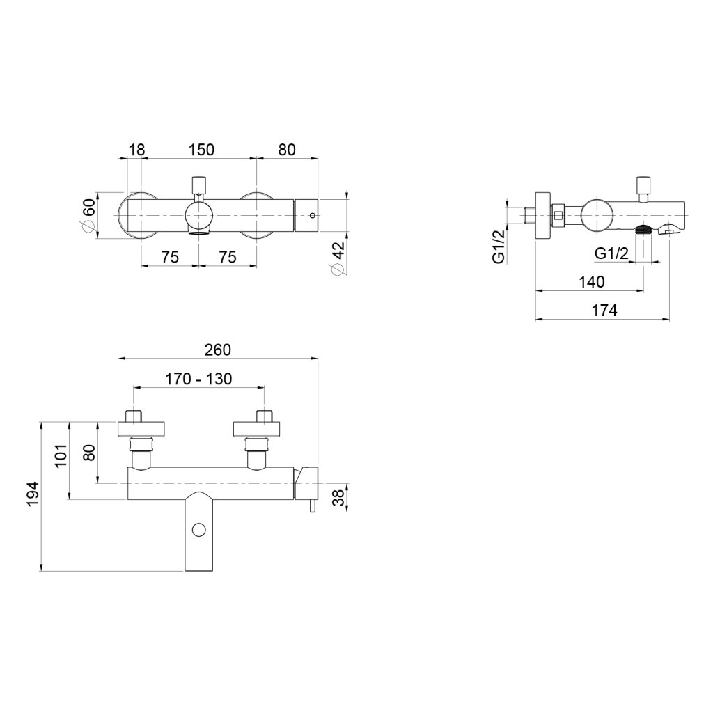 Sapho, ULTRAMIX nástěnná vanová baterie, černá mat/chrom, UT010BC