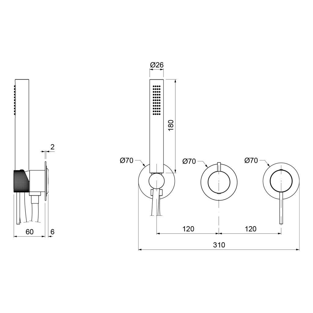 Sapho, ULTRASAN podom. sprch. baterie, ruční sprcha, 2 výstupy, zlato mat, UT045VG