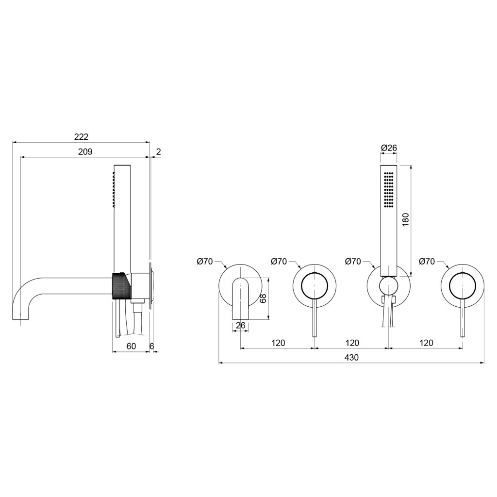 Sapho, ULTRASAN podomítková vanová baterie kompletní, černá mat, UT093VB