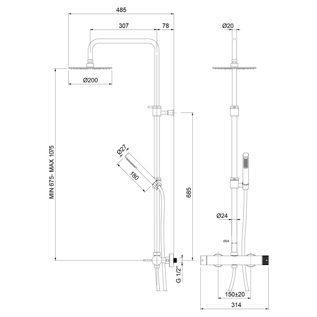 | Instalace: | Nástěnná 150 mm |
